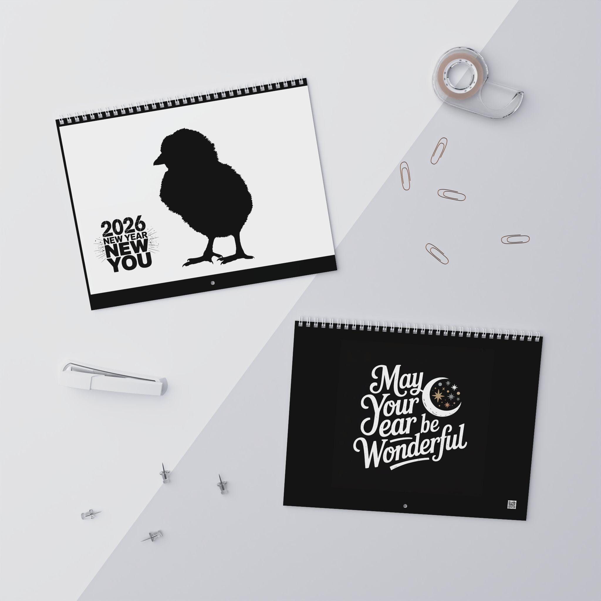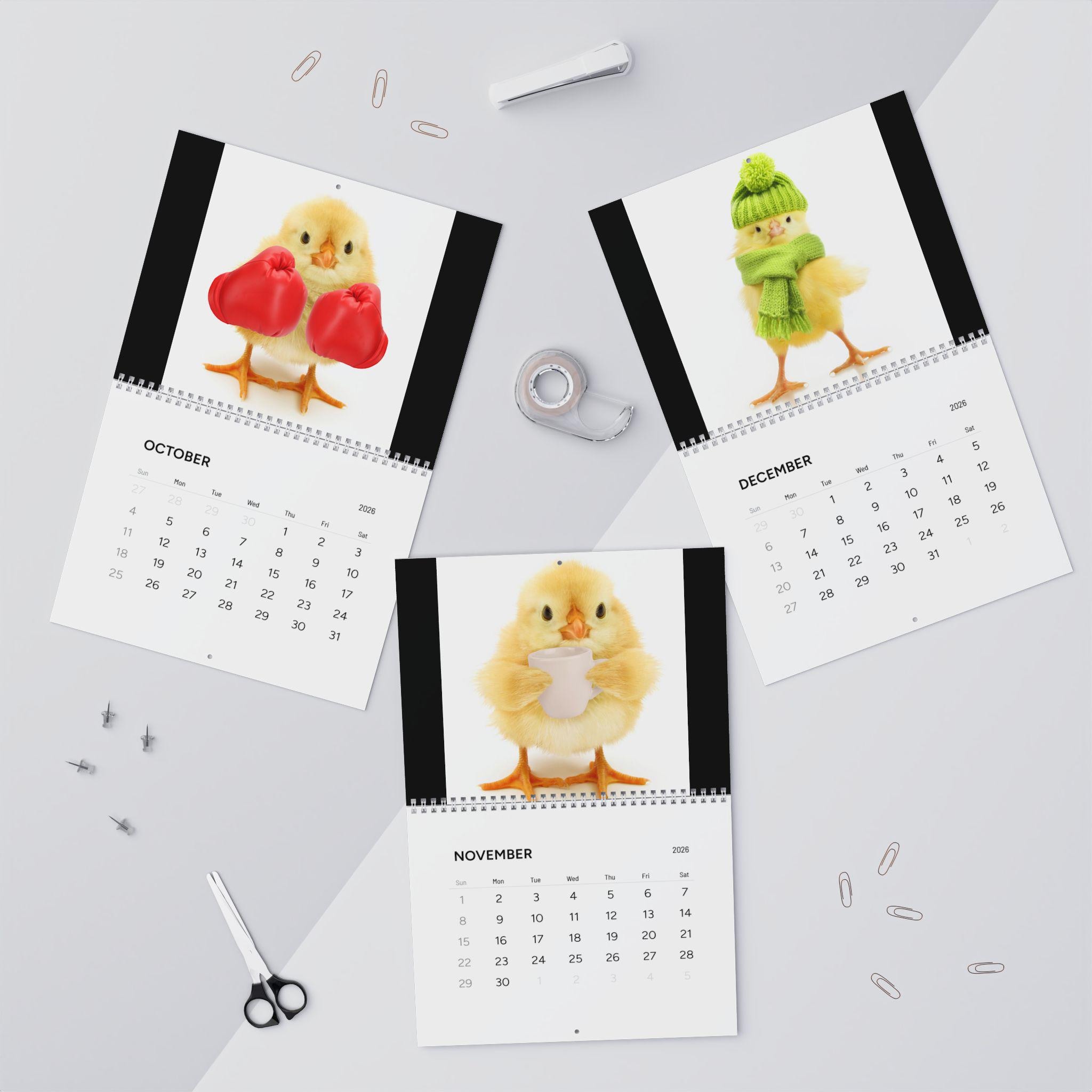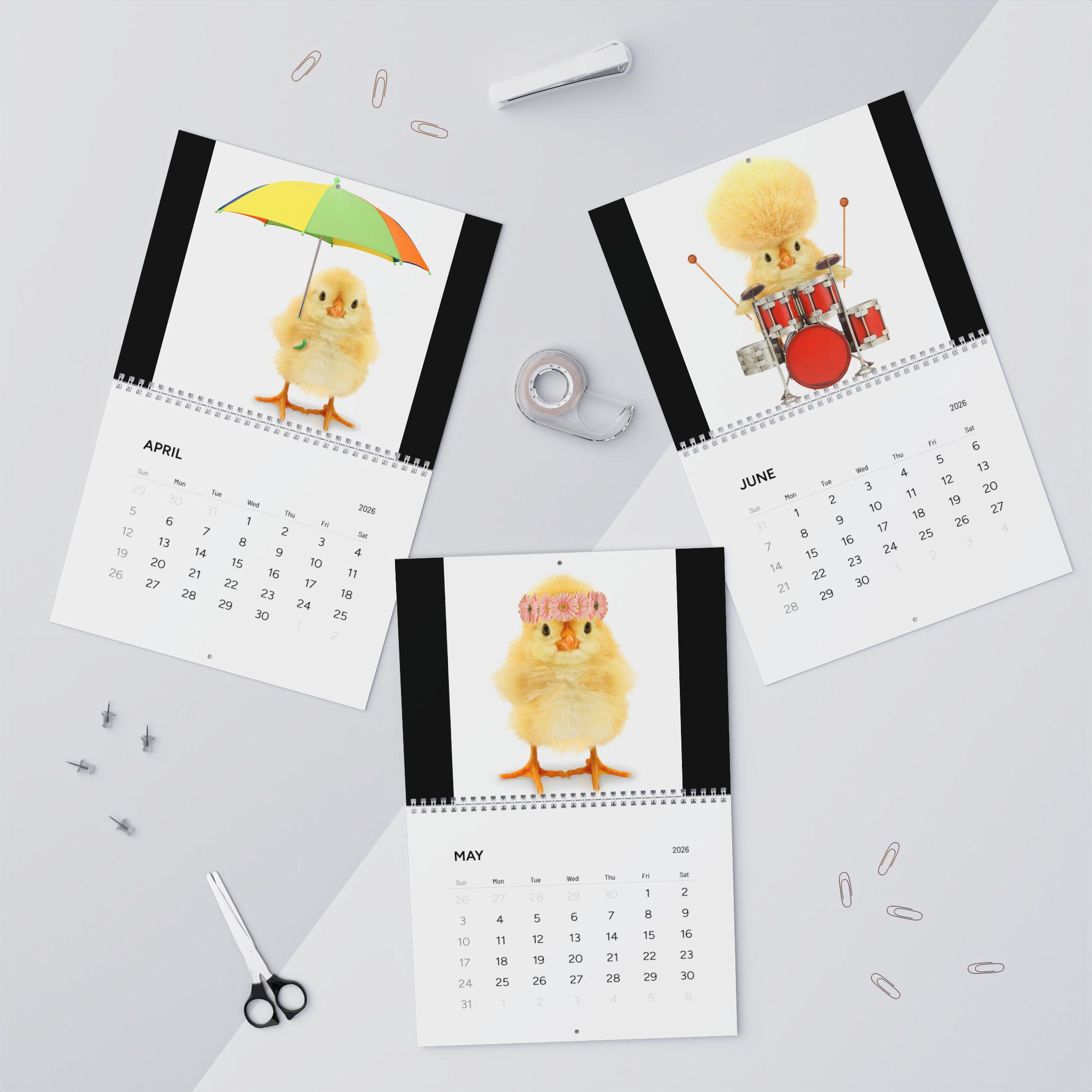 A cute baby Chick's wall calendar designed with vibrant colors and large images for each month. Perfect for adding a touch of cuteness and warmth to your office or home decor. Ideal for those who love animals and are looking for a fun and adorable way to stay organized in 2025. Great for Easter, springtime, and animal lovers.